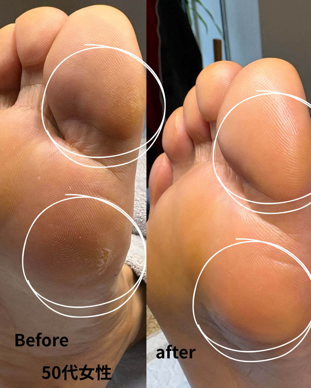 【50代女性 足裏・足指角質・足先の魚の目ケア 足スクラブマッサージ パラフィンパックケア】